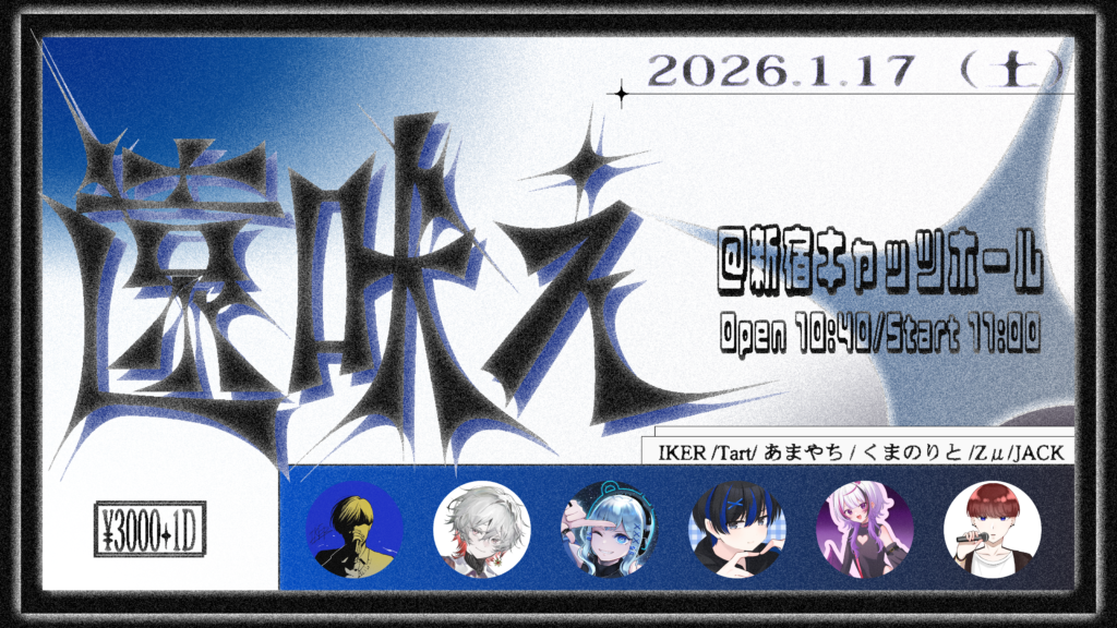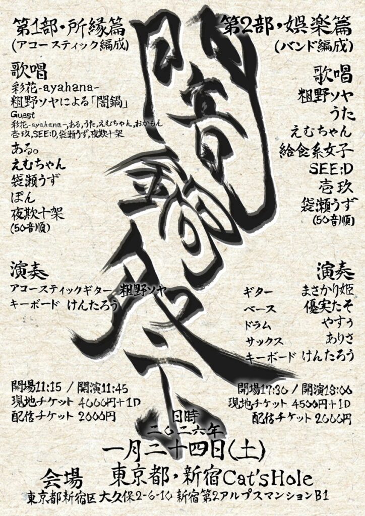 ACT:粗野ソヤによる闇鍋 GUEST:うた/okamon/SEE:D/壱 玖